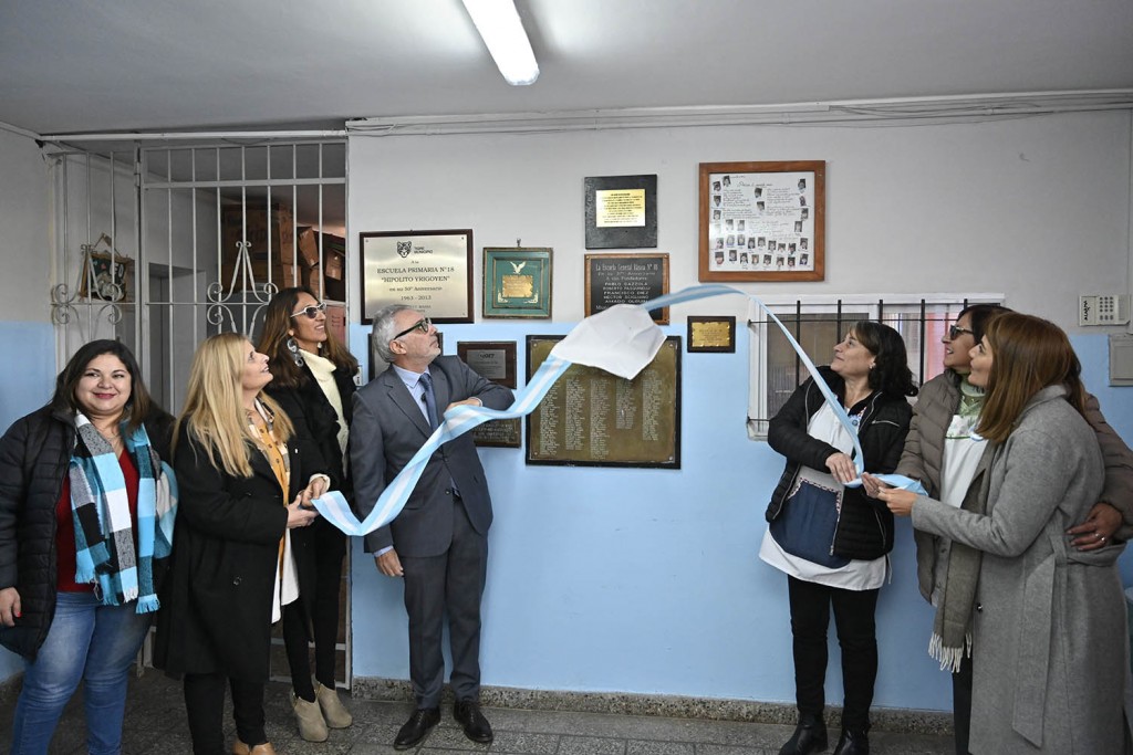 Al final de la celebración, el intendente y autoridades de la escuela descubrieron una placa en conmemoración a la fecha y otra en carácter de agradecimiento por su compromiso con la educación. Tras el cierre formal del acto, el jefe comunal recorrió una muestra fotográfica con la historia de la institución.