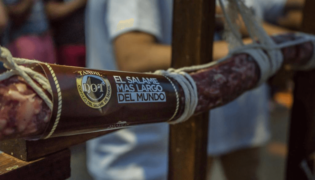 La tradición comenzó en 2014 y año a año se ha ido superando: en aquella oportunidad, las cinco familias productoras de chacinados de Tandil que conforman el Consejo de la Denominación de Origen presentaron el primer salame más largo del mundo, que midió 16,1 metros.