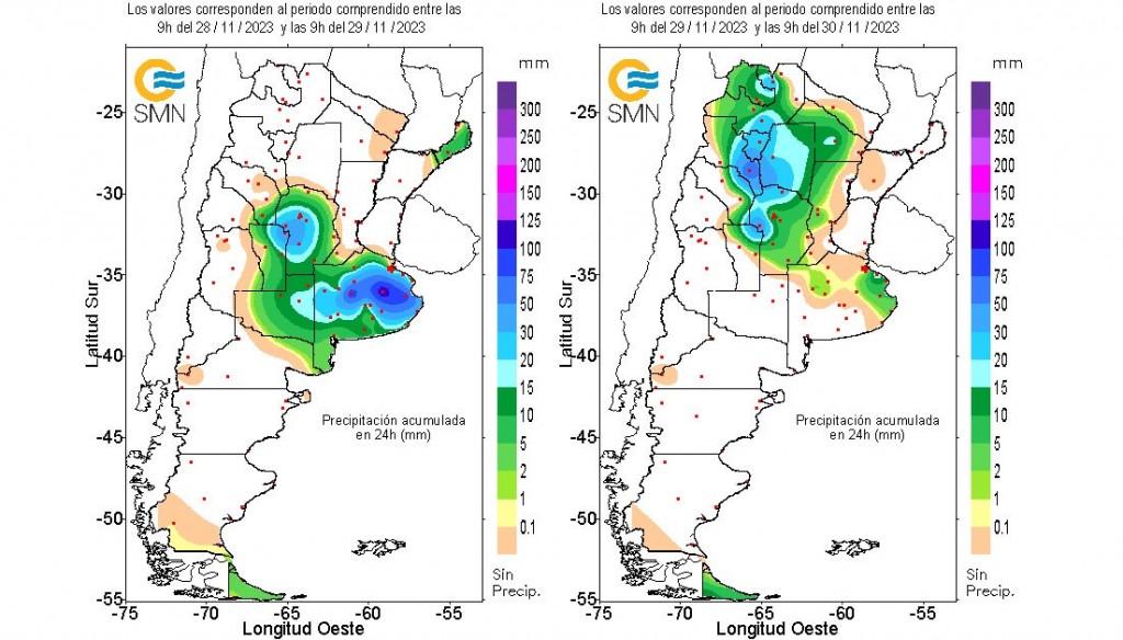 Como un parámetro adicional, la Red de Estaciones Meteorológicas del Gobierno de Córdoba mostró también que en esa provincia se registraron descargas de hasta 100 milímetros.