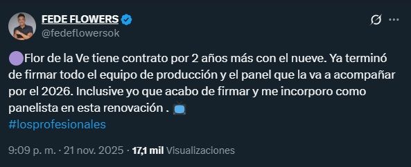 Fede Flowers se incorpora como panelista de Los Profesionales de Siempre. (Captura: Instagram)