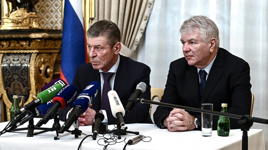Acuerdo entre Ucrania y Rusia de Mantener el alto el fuego y volver a conversar. En la foto Alexey Meshkova y Dmitri Kozak (enviados rusos). Foto AFP