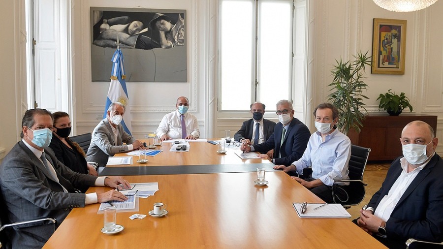 En ese marco, el jefe de Gabinete, Juan Manzur, recibió al ministro de Agricultura, Ganadería y Pesca, Julián Domínguez; al secretario de Asuntos Estratégicos, Gustavo Béliz; y a los presidentes del Banco Central, Miguel Ángel Pesce; y del Banco Nación, Eduardo Hecker, para dar impulso a esta línea de crédito que permita el incremento de las exportaciones de agroalimentos.