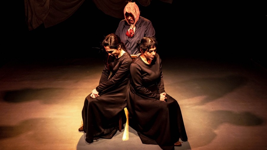 En su versión, las fámulas son Brenda Fabregat, Daniela Rizzo y Laura Silva -antes fue otra actriz- la "patrona", a la que despoja de aquel carácter iluminado por el mal para hacer de ella una suerte de señora de Barrio Norte, ocupada en nimiedades y pequeños detalles improductivos que no tienen que ver con su vida sino con las de sus empleadas.
