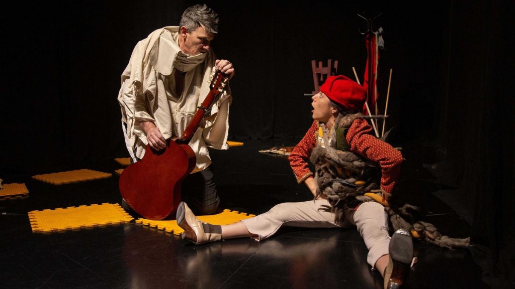 Una versión del clásico de Cervantes en la cual un hombre con mejillas hundidas, sin muelas, con una cara tan flaca que esas mejillas parecen besar por dentro su boca, es auxiliado por un escudero que le da fuerza. Porque Sancho Panza tiene una energía que el Quijote no tiene y entre los dos arman una obra.