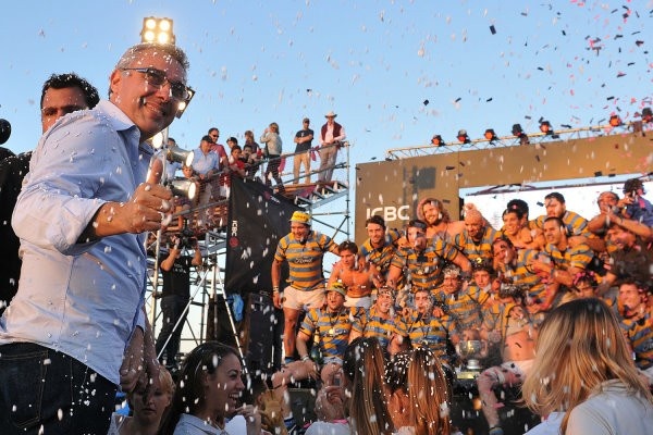 Julio Zamora junto a Hindú y Newman en la gran final de rugby