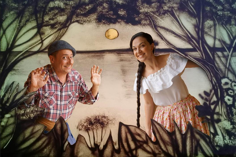 Oficiando de cuenta cuentos, Guadalupe Bervih y Daniel Casablanca nos despiertan la imaginación y los sentidos, y nos sumergen en esta aventura que cuenta con música en vivo e increíbles sombras de arena.