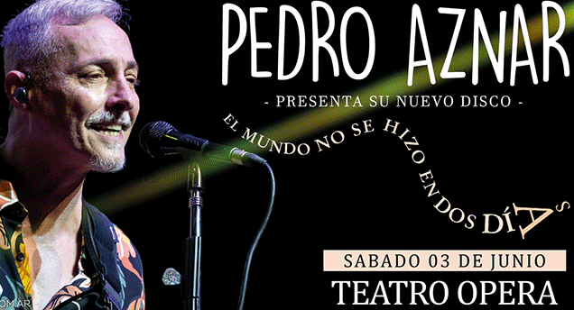 Pedro Aznar presentará su más reciente álbum, “El mundo no se hizo en dos días” junto a su banda y hará un recorrido por diferentes canciones de su vasta trayectoria, entre las cuales no faltarán sus grandes éxitos. Este show forma parte de una gira de presentación de “El mundo” que abarca varias localidades a lo largo y ancho de la Argentina, y otras ciudades de América Latina.