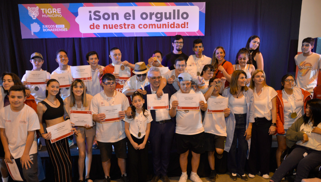 En el Polideportivo Mariano Moreno de Troncos del Talar, el intendente de Tigre, Julio Zamora, encabezó el acto de reconocimiento a vecinos y vecinas que participaron de los Juegos Bonaerenses y Juegos Nacionales Evita 2023. La delegación local estuvo integrada por más de 280 competidores en diversas disciplinas culturales y deportivas.   “Realmente fue un lindo agasajo para aquellos que participaron de ambos juegos. Tigre ha quedado en el puesto 11 en el medallero bonaerense, donde participaron más de 130 municipios, y eso es una muestra del potencial que tiene el distrito en estas áreas que forman parte de un pilar clave en el desarrollo de las personas”, manifestó el jefe comunal y agregó: “Los próximos años vamos a continuar dándole fuerza y empuje a la infraestructura; ya lo hicimos con los dos microestadios y lo estamos haciendo con la pista de atletismo para tener competidores de primer nivel”.   En las finales de los Juegos Bonaerenses, la delegación del Municipio de Tigre cosechó 45 medallas: 13 de oro, 17 de plata y 12 de bronce. Entre las disciplinas se encuentran: taekwondo, tenis, patín, pintura, dibujo y danza folclórica, entre otras. En tanto en los Juegos Nacionales Evita, se obtuvieron 7 medallas: 3 oros y 4 platas en dibujo, natación adaptada, tenis, lucha grecorromana y taekwondo.     El encuentro se desarrolló en horas de la tarde junto a deportistas, artistas y familiares, quienes disfrutaron de un agasajo de camaradería. Luego, se presentaron números artísticos de vecinos y vecinas que obtuvieron medallas en las competencias. Posteriormente, Zamora y las demás autoridades del Poder Ejecutivo comunal formalizaron la entrega de distinciones.   Diego Arias, quien compitió en baile folclórico, dijo: "Fue la primera vez que participé; la verdad que viví cinco días maravillosos. Tener colgada esta medalla de plata es una alegría enorme para mí y para mi compañera". Por su parte, Gastón, vecino que forma parte del equipo de fútbol que obtuvo la presea de plata en los JJBB, comentó: "Estoy más que feliz por haber sido parte de la competencia en Mar del Plata y traer esta medalla a Tigre. Agradecemos el respaldo del Municipio y del intendente Julio Zamora".    Los Juegos Bonaerenses son la principal competencia de la provincia de Buenos Aires, en los que participaron en su historia más de 20.000 millones de personas. Su propósito es promover la actividad física y las expresiones culturales en los jóvenes, adultos mayores, personas con discapacidad y universitarios. Por otro lado, los Juegos Nacionales Evita ofrecen un programa deportivo inclusivo para niños, niñas, jóvenes y personas mayores de toda Argentina; abarcan 76 disciplinas en un sistema competitivo compuesto por dos fases con una participación cercana a 1 millón de personas de todos los rincones del país.