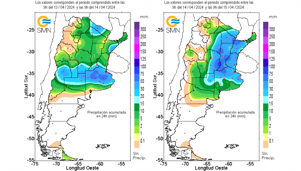De acuerdo con los mapas que elabora diariamente el Servicio Meteorológico Nacional (SMN), hubo varias regiones en las que se superaron los 100 milímetros con comodidad entre el viernes y este lunes a la madrugada.