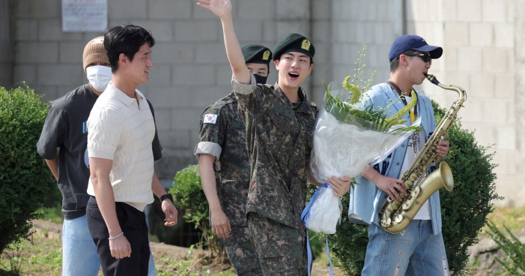 Jin, el mayor del grupo furor de K-Pop, estuvo 18 meses en su cuartel.Al salir, se reencontró con sus compañeros, que pidieron un día de licencia para poder verlo.