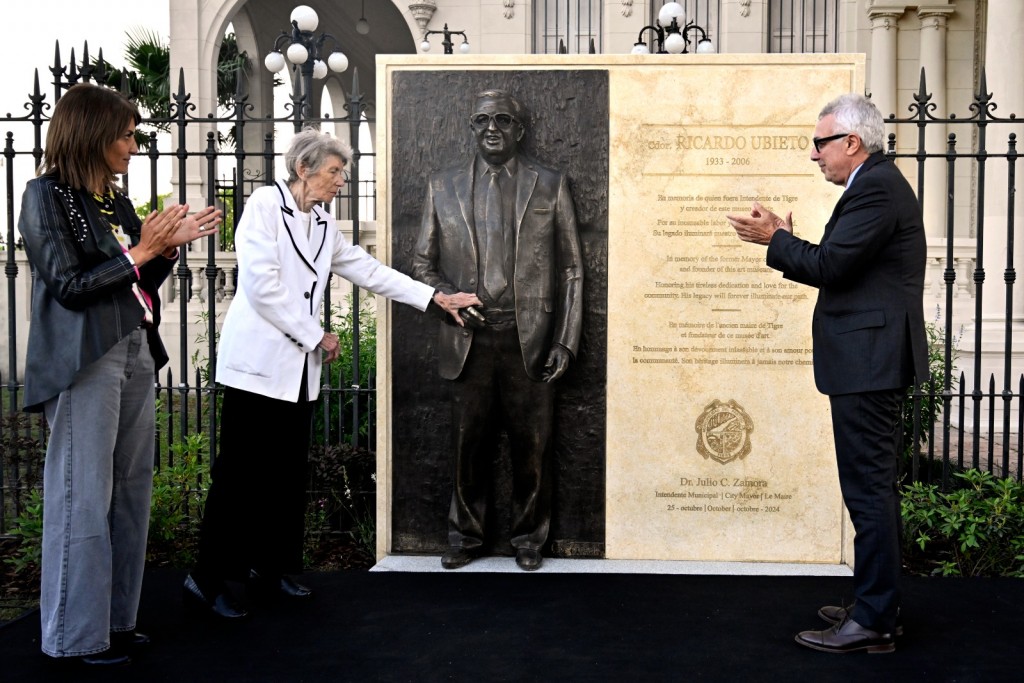 “La comunidad de Tigre es un faro inspirador para toda la Argentina; desde aquí demostramos que se pueden tender puentes con distintos partidos políticos para, en este caso, distinguir a una persona que fue un gran intendente del partido”, señaló el jefe comunal durante el acto junto a la viuda del ex intendente, Amanda Zocchi de Ubieto, con quien descubrió una estatua en los jardines del museo.