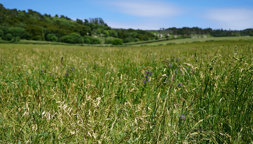 El campo trabaja con pasturas polifíticas (más de una especie), utilizando festuca, pasto ovillo, cebadilla y alfalfa, que se combinan para optimizar el uso del suelo durante los 4 años de vida útil de cada pastura.