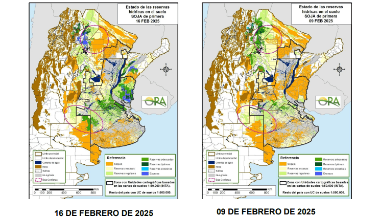 “Esta área más beneficiada por las precipitaciones abarca aproximadamente 3 millones de hectáreas de soja que a finales de enero se hallaban en condiciones de humedad deficitarias”, detalla la ORA.