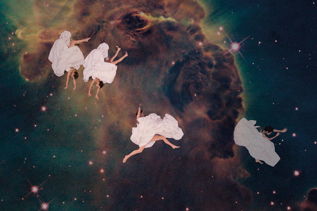 Galaxias se basa en la inserción imaginaria del hombre en el espacio sideral, un viaje ilusorio en el que los cuerpos de los seres humanos están libres para sumergirse y navegar en el fluido colorido de galaxias y nebulosas. Los movimientos de los bailarines filmados desafían la gravedad, al insertarse digitalmente sobre imágenes espaciales extraídas de los telescopios astronómicos de la NASA, en especial del Hubble Space Telescope.