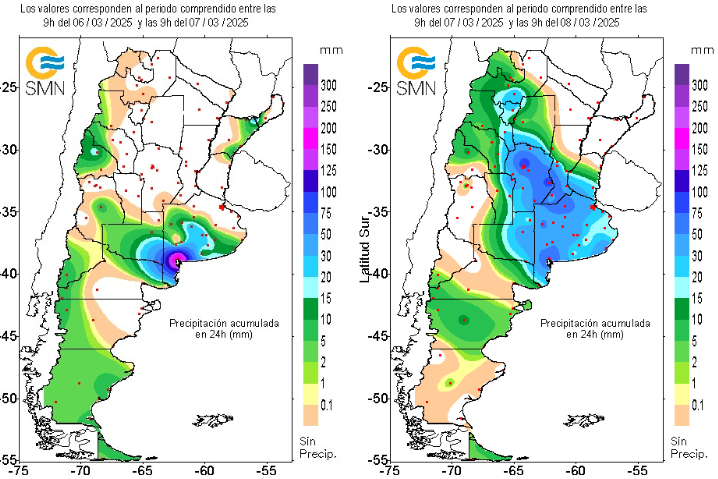Luego, en el norte de Buenos Aires, Pergamino marcó 284 mm y Rojas, 279 mm. En el sudeste cordobés, los milimetrajes son menores, pero igual superan la media histórica de febrero.