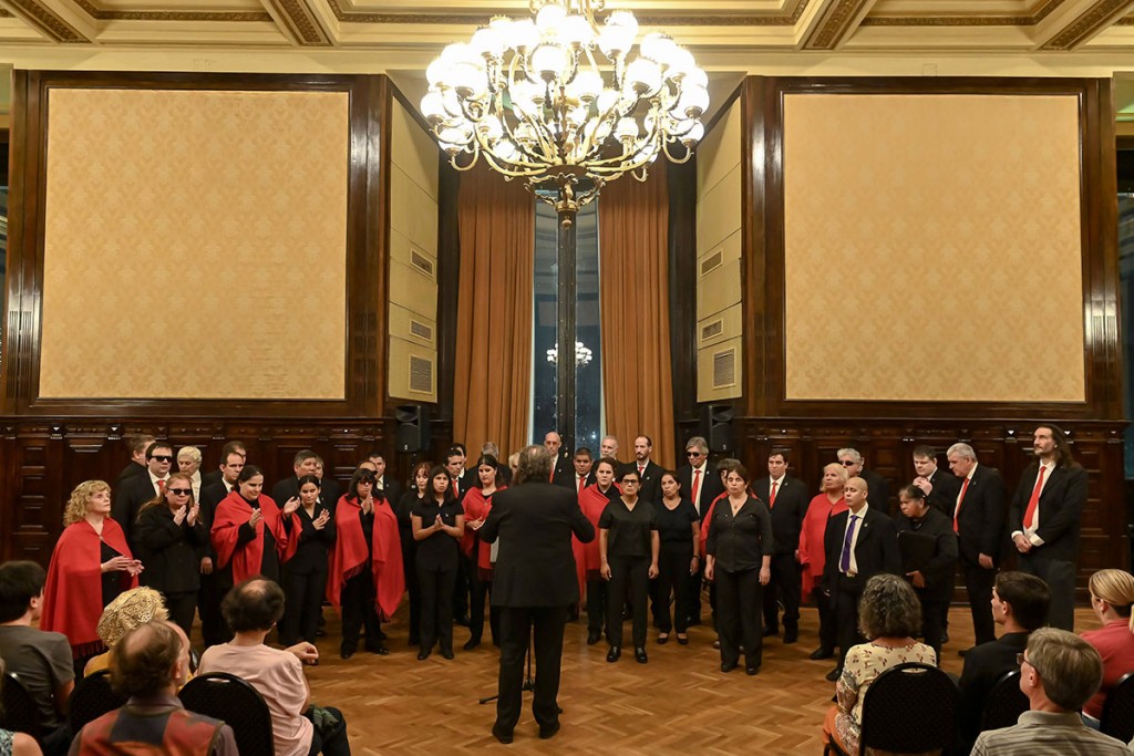 Bajo la dirección de Osvaldo César Manzanelli, el Coro Polifónico Nacional de Ciegos Carlos Roberto Larrimbe continúa su temporada de conciertos en el Salón de Honor con un repertorio de música académica y popular.