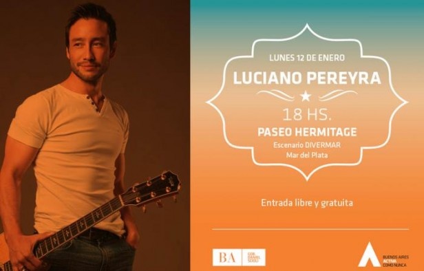 Este lunes 12 de enero, a partir de las 18.00, Luciano Pereyra se presentará en el escenario de DiverMar, de manera libre y gratuita, con la conducción de Juan Alberto Mateyko y Fernando Mancini.