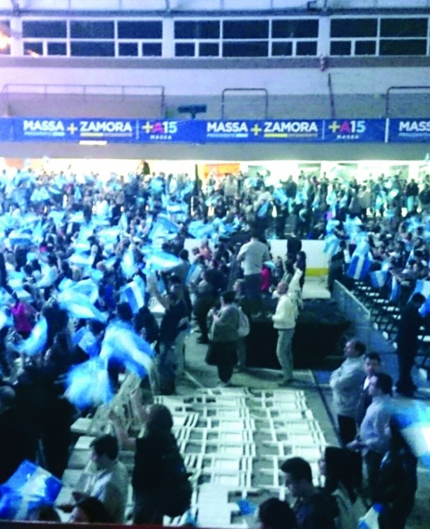No fue el mejor de los climas el que se vivió en la tarde del sábado. Aseguran que debido a la escasa convocatoria, los dirigentes massistas obligaron a la gente que ocupaba los laterales del microestadio a descender a la zona de la cancha, pero tampoco pudieron ocupar las sillas en su totalidad, tal como se puede ver en la fotografía del momento del cierre del acto con los simpatizantes flameando las banderas. Otra muestra de la escasa convocatoria son las pantallas preparadas en el exterior del estadio, previstas para gente que no logre ingresar, pero las pantallas permanecieron apagadas en todo el acto.