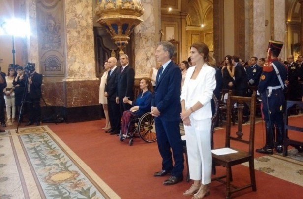 Los nuevos funcionarios fueron saludados por ciudadanos apostados ante las vallas dispuestas para el operativo de seguridad. La ceremonia está a cargo del arzobispo de Buenos Aires, Mario Poli.