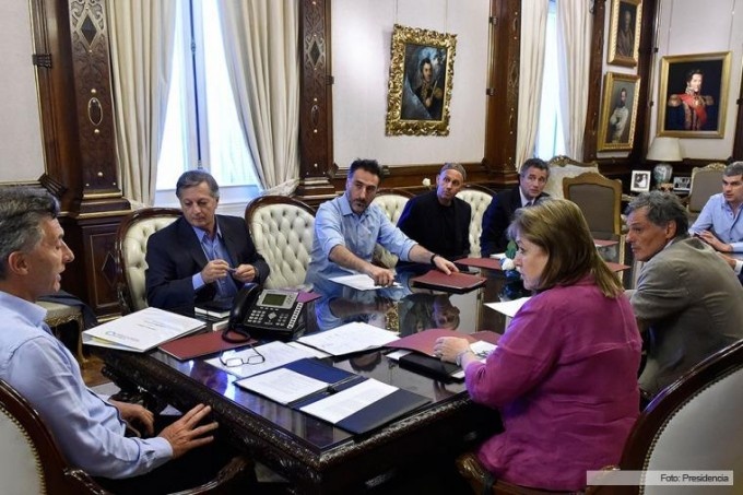 Participaron de la reunión el jefe de Gabinete, Marcos Peña; los ministros de Medioambiente y Desarrollo Sustentable, Sergio Bergman; de Energía y Minería, Juan José Aranguren; de Relaciones Exteriores, Susana Malcorra; de Producción, Francisco Cabrera; y el secretario de Asuntos Estratégicos, Fulvio Pompeo.