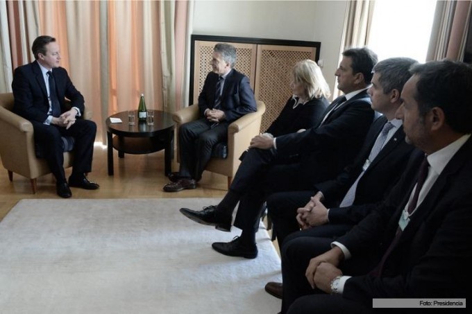 Según informó Presidencia, el jefe de Estado Macri se reunió con el premier británico en el Hotel Belvedere, en Davos, acompañado por la canciller Susana Malcorra, el jefe de gabinete, Marcos Peña; el diputado del Frente Renovador, Sergio Massa, y el secretario de Asuntos Estratégicos, Fulvio Pompeo.