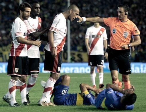 Boca jugó desde los 10 minutos con inferioridad numérica por la expulsión de Silva, tras una violenta falta a Gabriel Mercado (salió lesionado), a los 20 minutos del segundo tiempo perdió a Peruzzi por juego brusco y trece minutos más tarde a Díaz por exceso verbal contra el árbitro Patricio Loustau, que más tarde le mostró tarjeta roja a Jonathan Maidana y Leonardo Pisculichi (estaba en el banco de suplentes), ambos de River.