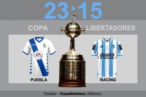 El vencedor del cruce (el desquite se jugará miércoles 10 a las 21.45) entre Racing Club y Puebla integrará el Grupo 3 junto con Boca Juniors, Bolívar (Bolivia) y Deportivo Cali (Colombia).