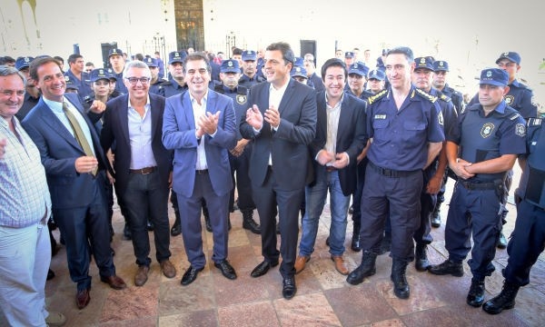 Ante la presencia del intendente Julio Zamora y el diputado nacional Sergio Massa, el ministro de Seguridad provincial Cristian Ritondo hizo entrega del equipamiento de seguridad para la Policía provincial con asiento en el distrito.