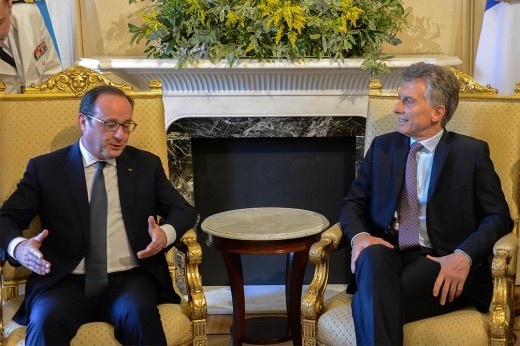 El presidente argentino Mauricio Macri y su par de Francia, Francois Holland mantienen una reunión en el salón Eva Perón de la Casa Rosada, a cuyo término firmarán más de 20 acuerdos bilaterales, entre ellos un proyecto de entendimiento destinado a construir un reactor de investigación y otro de potencia que será ofrecido a Sudáfrica.
