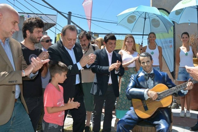 La estatua inaugurada es obra del escultor Fernando Pugliese, que trabaja en un sistema especial, con elementos como fibra de vidrio y epoxi, como hizo para realizar las figuras que ya están incorporadas al paisaje de la Plaza del Folklore, de Atahualpa Yupanqui, Marcedes Sosa y Jorge Cafrune.