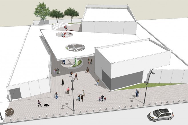En el edificio contiguo se emplazará una boletería, una sala de espera con bar y baños para el público, un área de exposición de obras y un SUM, donde los vecinos podrán hacer talleres artísticos gratuitos. Por otro lado, este sector se comunicará por medio de un patio semicubierto a un auditorio que será construido detrás del área que destinarán a la recepción.