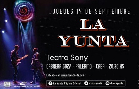 La Yunta, el dúo más representativo de Tucumán, regresa a Buenos Aires para presentar su último disco titulado “Vivo”. El show será el jueves 14 de septiembre a las 20:30 hs en el Teatro Sony (José Antonio Cabrera 6027 – Palermo).