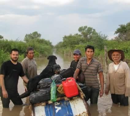 La crecida del agua y el panorama devastador que se observa en la zona del Chaco Salteño no fue impedimento para que el artista con su equipo de colaboradores se acerque con donaciones.