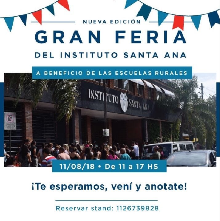Con el fin de continuar con esta acción solidaria el Instituto Santa organiza en su sede ubicada en Comodoro Rivadavia 1385 de General Pacheco, una feria a beneficio. La actividad, abierta a la comunidad toda, se desarrollará el sábado 11 de agosto en el horario de 11 a 17.