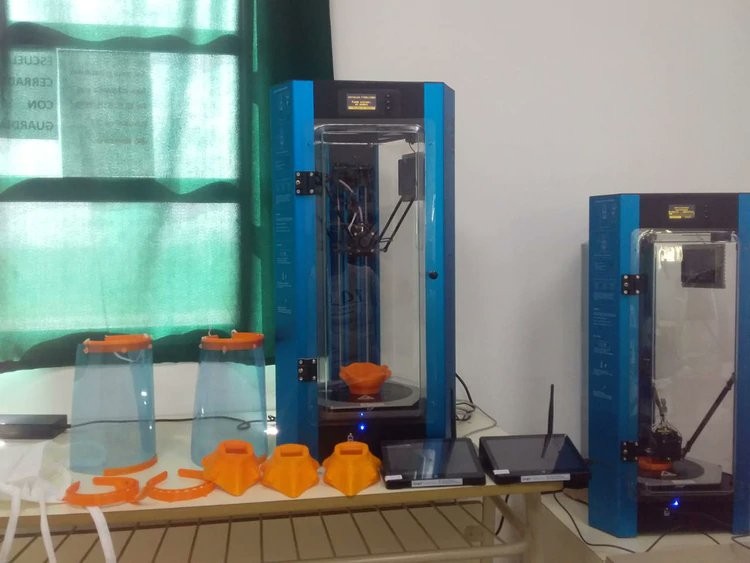 Los modelos para fabricar los implementos están disponibles online, y todos los días la escuela recibe carreteles de 6 kilos con cables de PLA, un material sintético que se utiliza para la impresión 3D. Hasta ahora llevan fabricadas 20 caretas, y piensan fabricar todas las que puedan. Luego, las entregan al municipio qué les agrega un filtro sanitario.