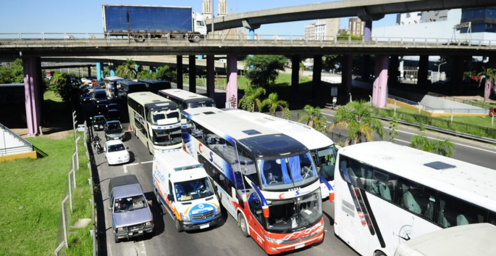 Un mes atrás, los transportistas también se concentraron durante casi 60 horas en la misma intersección de las avenidas 9 de Julio y San Juan, reclamando ayuda económica, la extensión de la antigüedad máxima de las unidades de 13 a 15 años y la autorización para volver a realizar tour de compras.