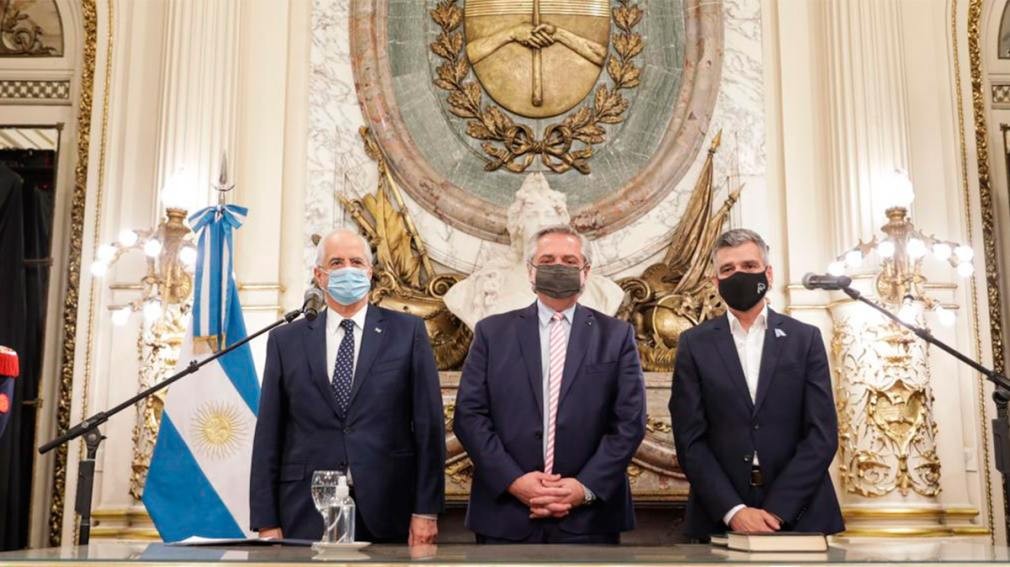 Jorge Taiana y Juan Zabaleta asumieron como ministros de Defensa y de Desarrollo Social, en reemplazo de Agustín Rossi y Daniel Arroyo, respectivamente, tras prestar juramento ante el presidente Alberto Fernández en la Casa de Gobierno.