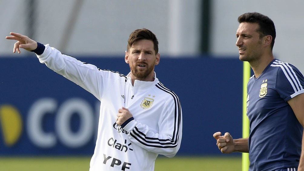 El capitán Lionel Messi y el DT Lionel Scaloni.