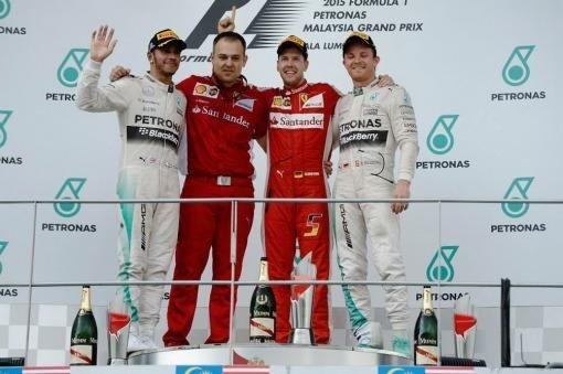 Vettel, campeón de la categoría en 2010, 2011, 2012 y 2013, cubrió las 56 vueltas al circuito de Sepang (5.543 metros) con un tiempo de 1h.41m.793/1000 y relegó a los corredores de Mercedes, el inglés Lewis Hamilton, actual monarca, y el alemán Nico Rosberg, que completaron el podio.