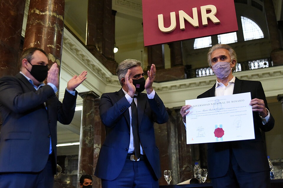 El acto de distinción se realizó en el Espacio Cultural Universitario y fue transmitido por el canal oficial de YouTube de la UNR.